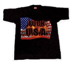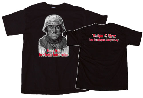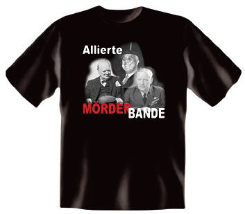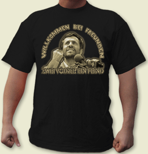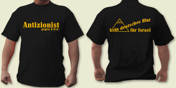 eine Auswahl von T-Shirts und Fahnen. z.T. firmiert dieses Sortiment als "Solidaritätsartikel" der Nazis für islamistische Staaten.